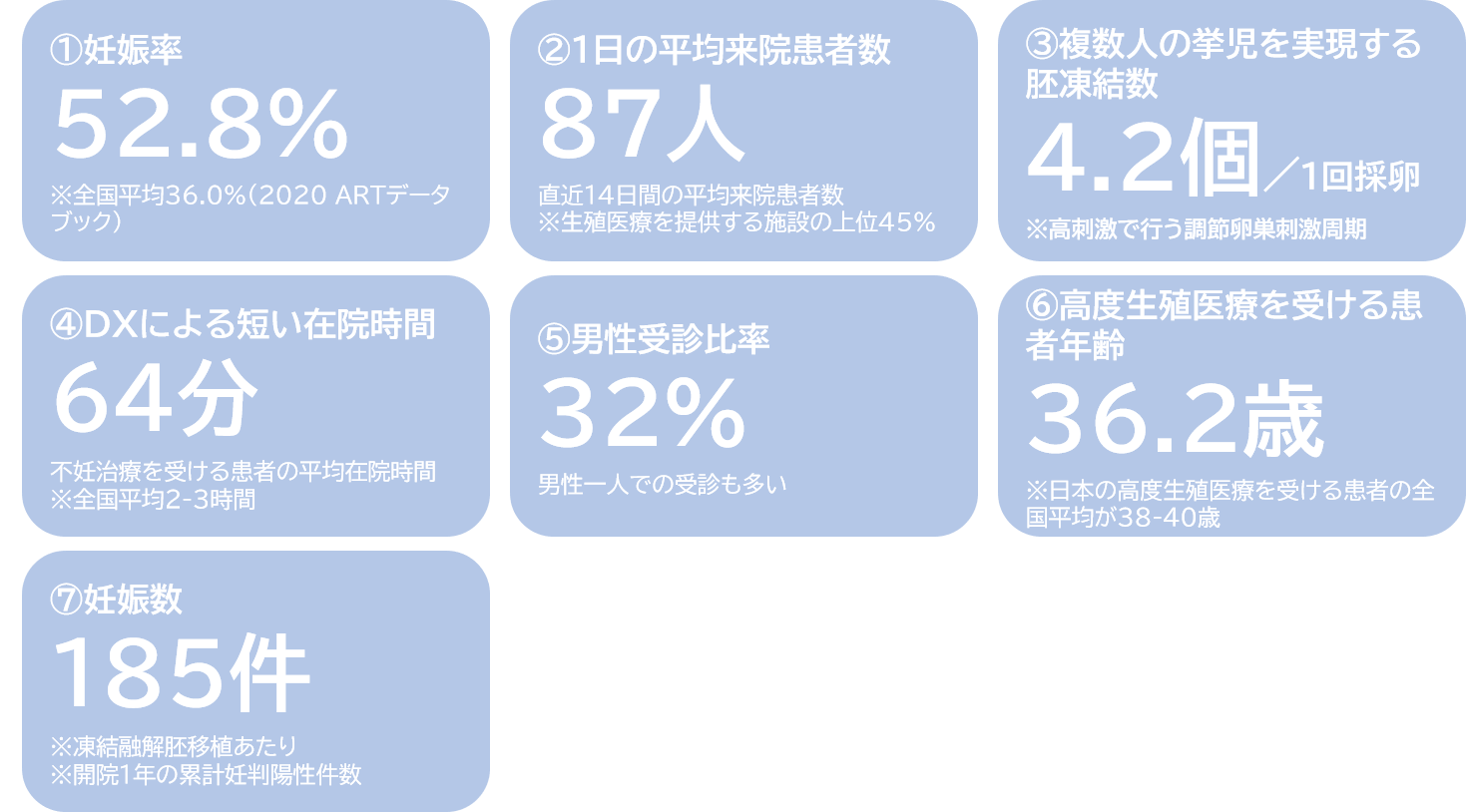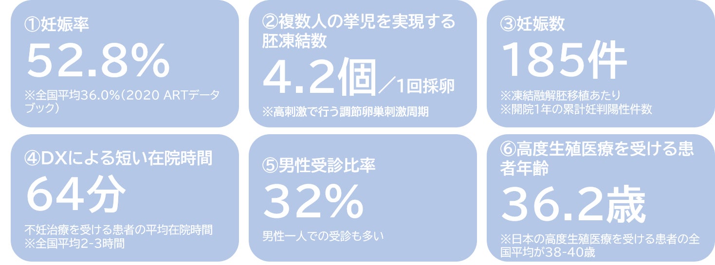 トーチクリニック恵比寿は2022年5月に開業してから1年が経過致しました。質の高い医療の提供は基本とし、予約・問診・決済までを専用の受診アプリ内で行うことで、在院時間の削減と通院の負担を大きく軽減し、仕事と両立しやすい不妊治療を提供することを目標に掲げて、日々運営して参りました。治療を繰り返す通院負荷で16%が離職する(参考:Imai, Y. et la, Occupational and Environmental Medicine,2020)と言われておりますが、生殖医療へのアクセスを良くし、肉体的にも精神的にも通いやすいクリニックを創ることで、少子化対策の一助を担えるのではないかと考えております。トーチクリニック恵比寿の1年の成果は下記になります。