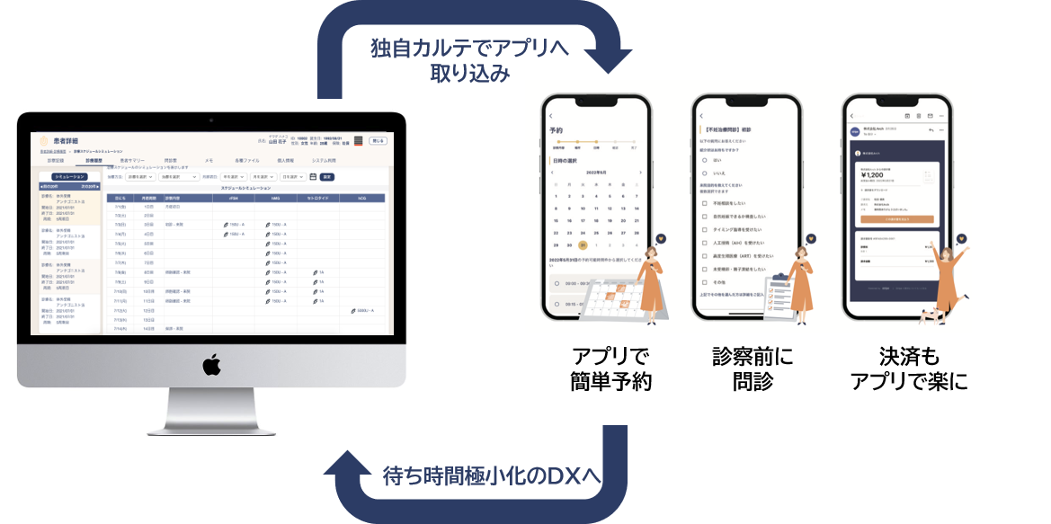 初潮から閉経までの女性の一生に寄り添い、やりたい事とライフステージの変容を支えるかかりつけ院となりうる仕組みを作り、生理がつらい、子どもを授かりたい、産後社会復帰をしたい、などの移りゆくステージに応じたトータルソリューションを提供することを目指しております。この1年では、医療機関向け電子カルテシステム等と患者向けの事前予約/問診/事後決済ができる受診アプリを開発し、1分でも院内の無駄な待ち時間を減らし、シームレスな診療体験を提供できればとDXを進めて参りました。