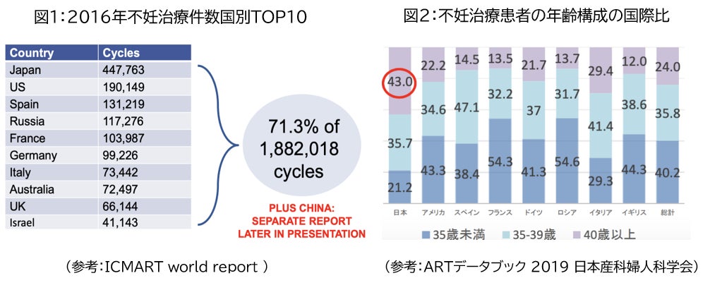 患者の治療開始が遅い要因は2つあり、1つは女性の活躍機会増などの様々事情で晩婚/晩産化が進んでいること。もう1つは、義務教育での性教育の時間は平均9時間といわれており、妊孕性についてのリテラシーは先進諸国のなかで最低水準です。妊孕性理解不足による計画性の欠如が出生率の低下に直結しているといっても過言ではありません。