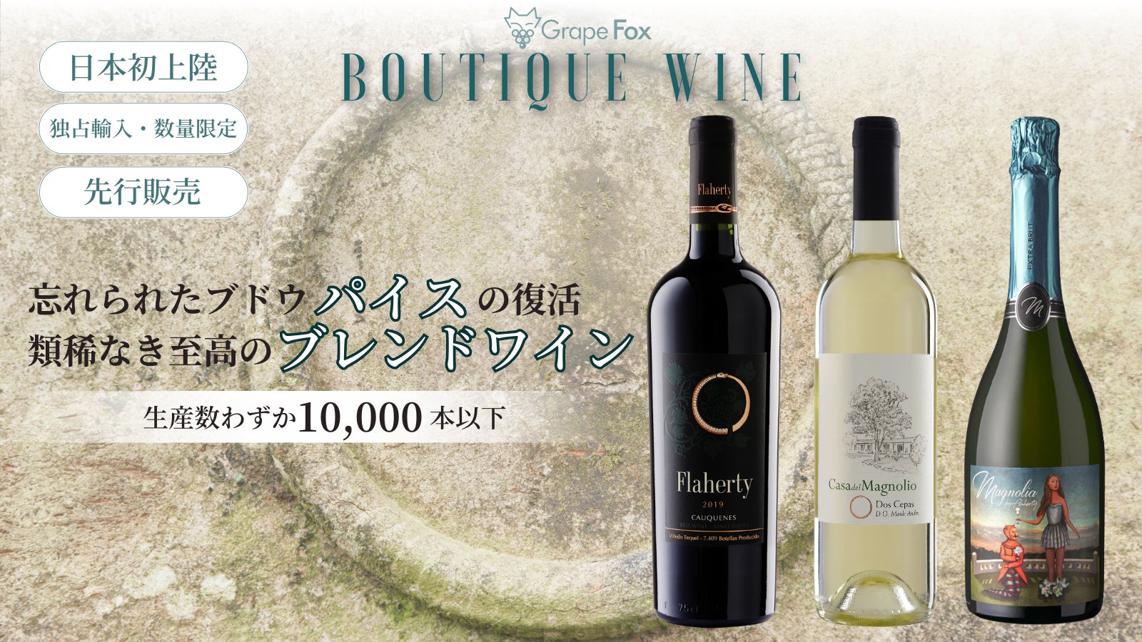 今回GrapeFoxは、そんなブドウの楽園チリで極めてエレガントなワインを造る小規模なブティックワイナリーから、歴史から忘れ去られたブドウ品種『パイス』を使用した特別な日本未輸入*のブレンドワイン3商品をを厳選。Makuakeにて特別価格での先行発売をいたします。