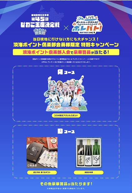 淡海ポイント倶楽部の会員の方はさらに豪華賞品が当たるプレゼントキャンペーンに応募できます!お早めにテレボート及び淡海ポイント倶楽部への入会をおすすめします。