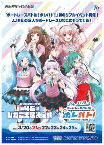 株式会社ClaN Entertainment(本社:東京都港区、代表取締役社長:大井 基行)は、ボートレースびわこ(施行者:滋賀県)公式YouTube番組「.LIVEのボートレースバトル!ボレバト!」の第二弾を3月20日(月)14 時より配信をスタート、さらに3月21日(火・祝)および3月25日(土)には、ボートレースびわこにて番組初の現地イベントを開催することを発表いたします。「ボートレースバトル!ボレバト!」は2022年8月から9月まで、ボートレースびわこ公式チャンネルにてVTuberが出演し、ボートレースの予想で競った配信番組です。