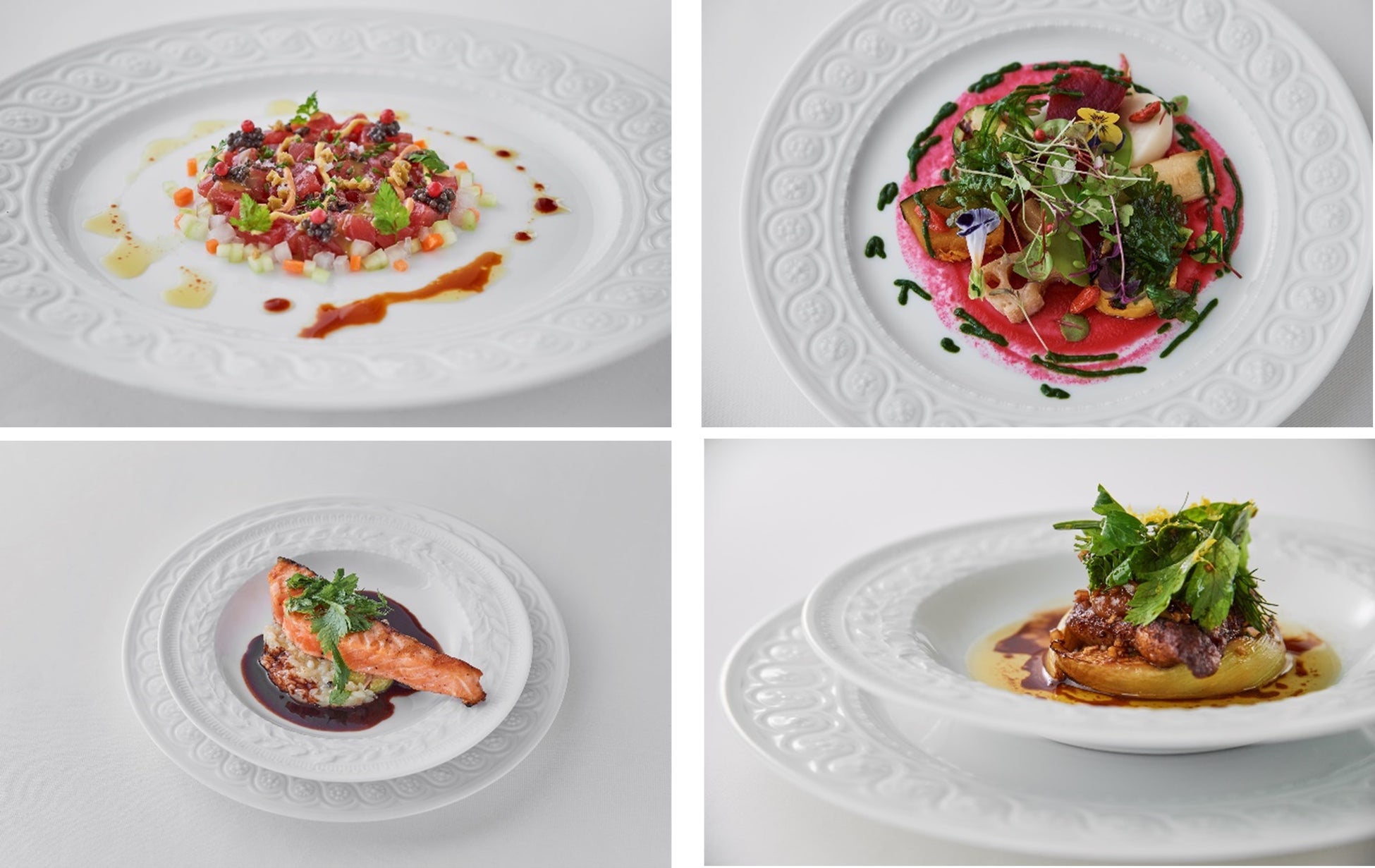 葛飾北斎の名を冠したこのスペシャルダイニングでは、最高品質のサービスとともに、三國シェフに監修いただくアミューズブーシュ、前菜、スープ、サラダ、メインディッシュ、デザート、プティフール等、季節の食材を活かした7皿のコースメニューを提供いたします。このコースメニューは前菜、メインディッシュは計5種類(ベジタリアンメニュー含む)から、デザートは3種類(グルテンフリーメニュー含む)からお選びいただくことができるプリフィックスメニューで、年に2回季節に合わせて更新されます(プリフィックスメニューでお選びいただくメニューの一部には追加料金をいただくものもございます)。