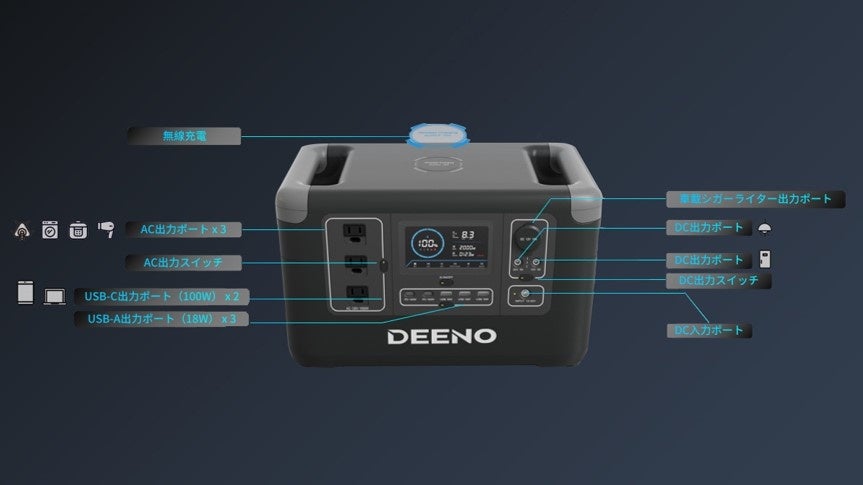 エコリカのリサイクルインクカートリッジやLED照明製品をはじめ、環境に配慮した商品を多数取り扱っている当社としても、長期間にわたって繰り返し使える経済性や、ソーラーパネルを使えば太陽光のクリーンエネルギーで充電できるエコ的な部分に注目し、DEENO製ポータブル電源の取り扱いを開始いたしました。