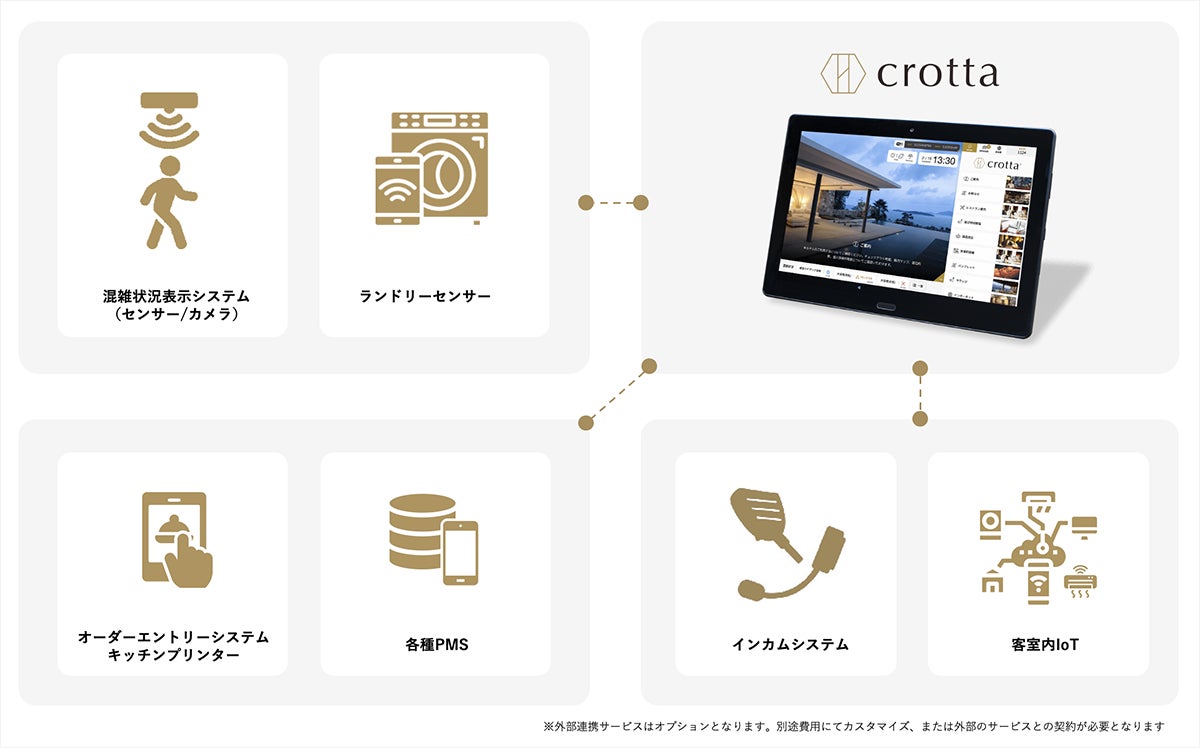 客室タブレット「crotta」では、さまざまな外部システムとの連携が可能になっています。たとえばレス