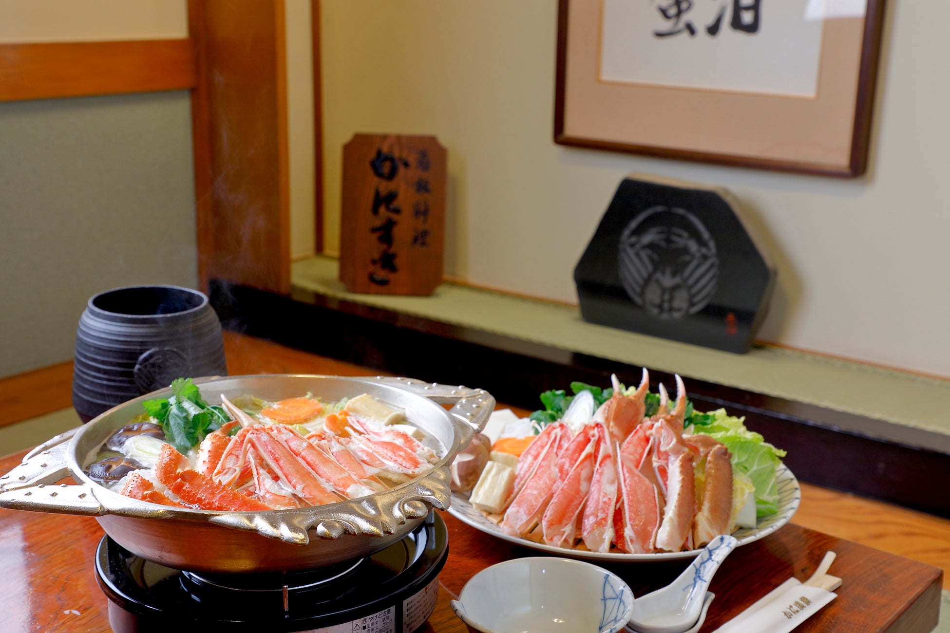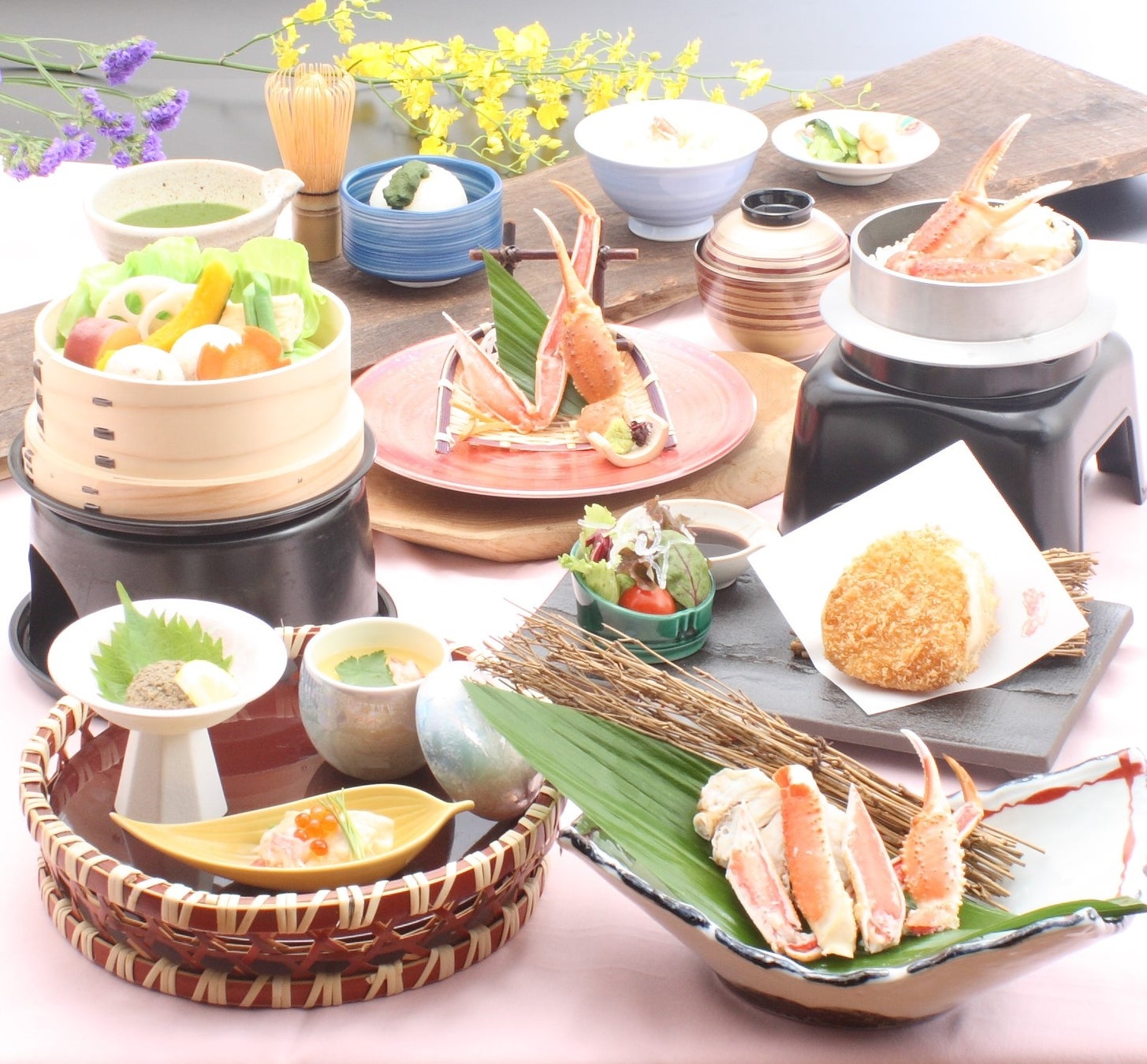 ランチメニュー「お昼のかに御膳」は午後4時までご用意しており、ゆっくりとお食事もお楽しみいただけます。バラエティ豊富な種類で人気の「かに会席」や贅を尽くした「かに特別会席」、創業以来60余年守られ、進化を続ける秘伝のだしが自慢の看板料理「かにすき」をはじめ、素材それぞれの魅力を最大限に引き出し「茹」「刺身」「焼」「揚」「寿司」と様々な調理方法で仕上げた専門店ならではのかに料理はどれも絶品です。