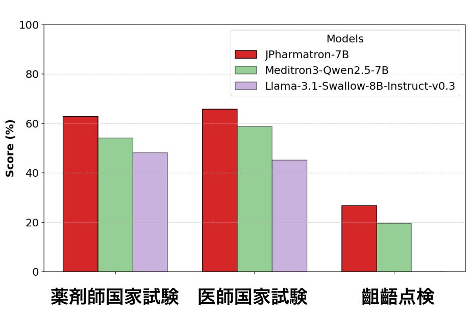 株式会社EQUES(以下EQUES)は、製薬業界向けの新しい大規模言語モデル(LLM)「JPharmatron-7B」を発表いたしました。製薬・薬学分野の包括的なベンチマークである「JPharmaBench」において、類似する医療分野のドメイン特化モデルである「Meditron3-Qwen2.5-7B」をすべての項目で上回る性能を記録するなど、同パラメータ規模のオープンモデルとしては最高性能を達成しています。なお、本開発は、経済産業省/NEDOによる生成AI研究支援プログラム「GENIAC」の一環として実施しました。