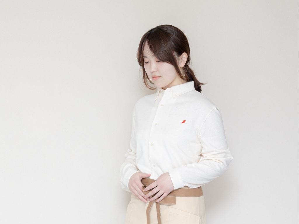 この度、ユニフォームを通じた持続可能な社会実現に向けて「TSUMUGI」を生地に使用したユニフォームを製作しました。また、南米エクアドル産「タグアヤシ」の木の実を材料にした天然素材「ナットボタン」や、水溶性の芯地や生分解性のあるミシン糸など、資材の選定にもこだわりました。男女区別なく兼用できるデザインやサイズ感など、環境だけでなく、着る人にも配慮した工夫をしています。機能面では、作業がしやすいよう袖をまくって留められるロールアップタブを付けました。エプロンにはずり落ち防止のループを付けたり、手が入りやすいようポケットを斜めにするなどユニフォームならではのこだわりが詰まっています。