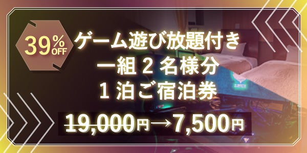 ■通常価格から39%オフ!ゲーム遊び放題付きペア宿泊券!