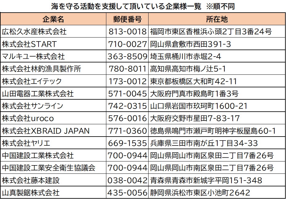 大阪府港湾局、大阪府貝塚市、フィッシュフレンズの3社間にて協定を締結しており継続的にフィッシュフレンズが清掃活動を実施することを支援していただいております。