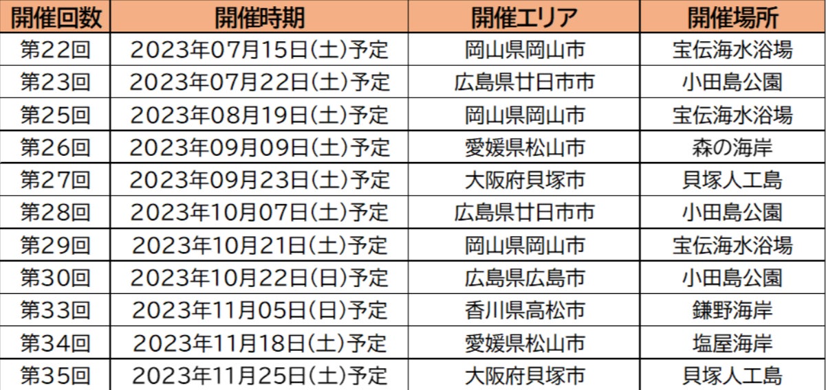 - 2023年5月27日(土)高知県高知市春野町仁ノ海岸にて実施