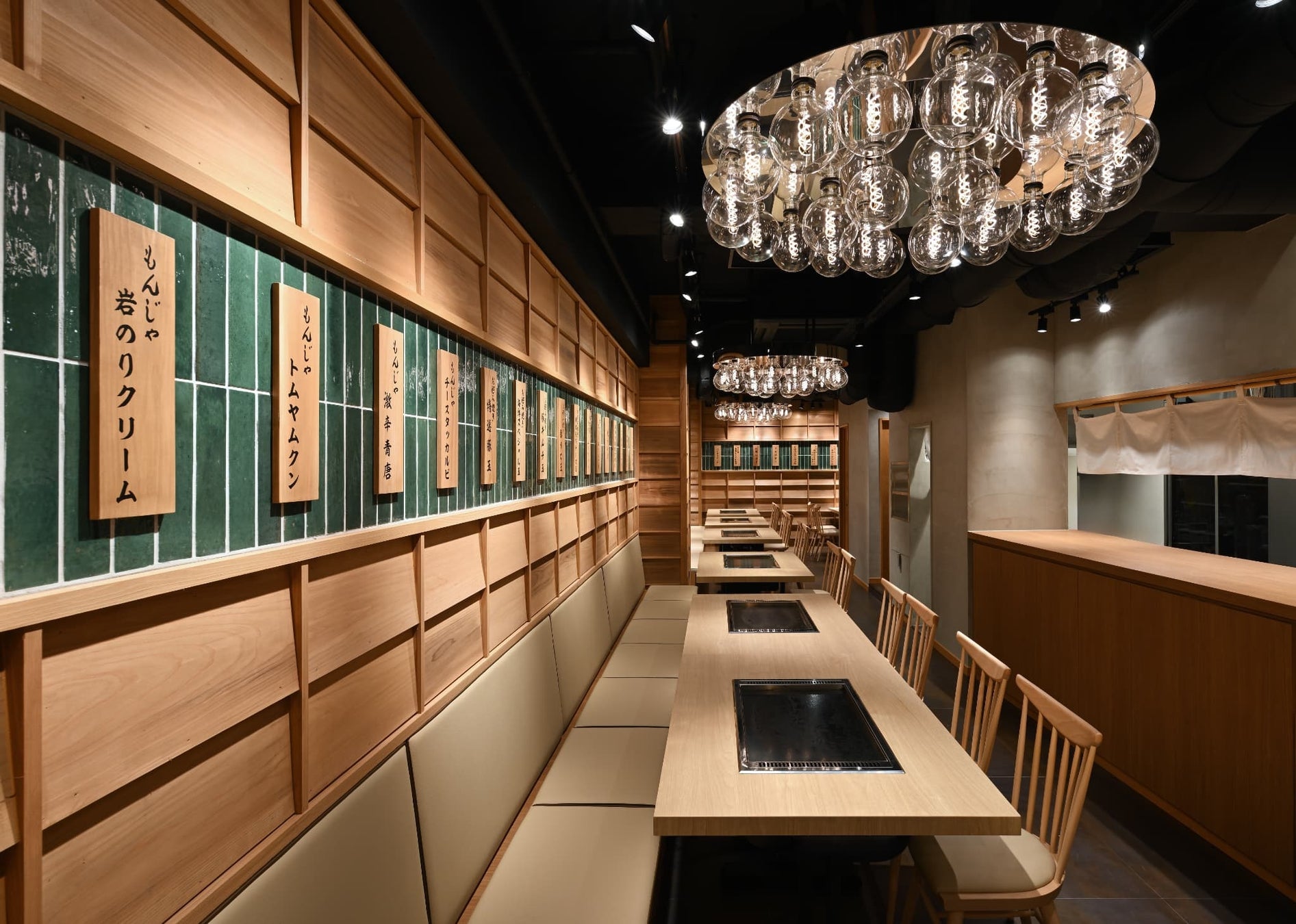 昔ながらの“下町の温かさ”と、現代的な“洗練された空間演出”を融合させた、もんじゃ・鉄板焼き酒場として、幅広い世代のお客様よりご好評をいただいております。