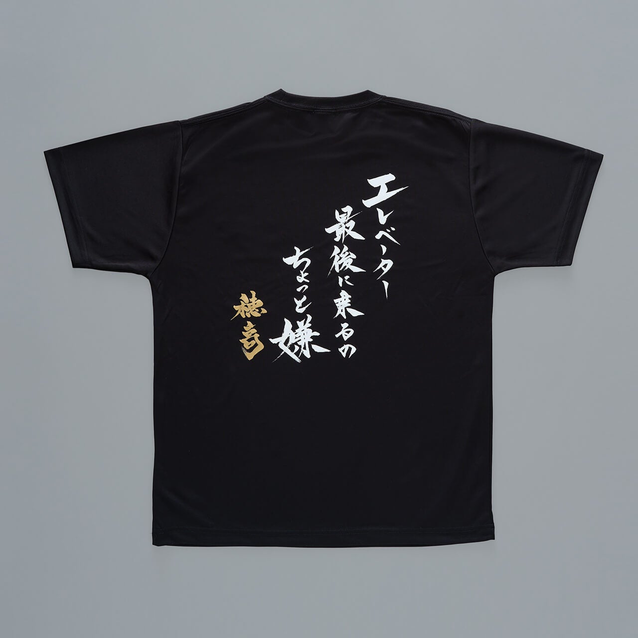 本人をイメージした左胸元のキャラクタープリントやクスッと笑える習字がファンにはたまらない1着。