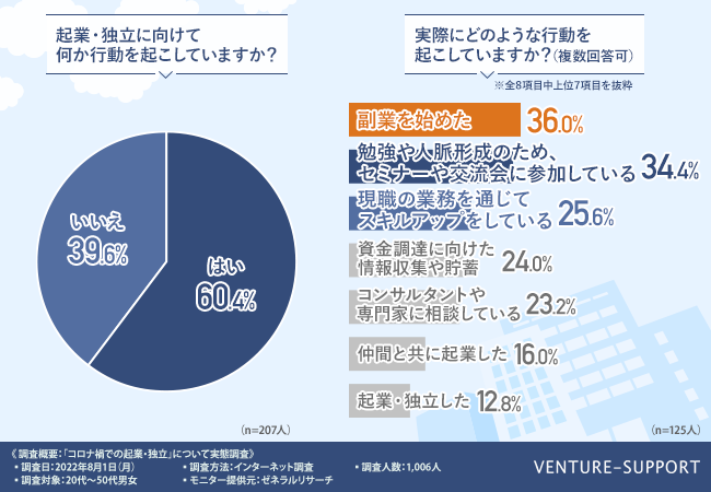 - 起業・独立を考えている人の6割が将来の起業・独立を念頭にすでに行動を起こしている