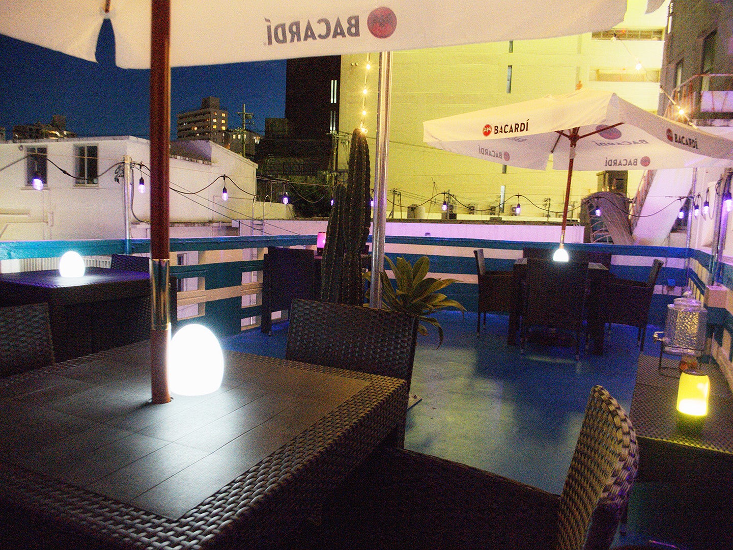 1Fの店内席と、3Fの屋上テラス席を設けており、好天時の夜間には、屋上テラス席を「ルーフトップビアガーデン」として営業しております。