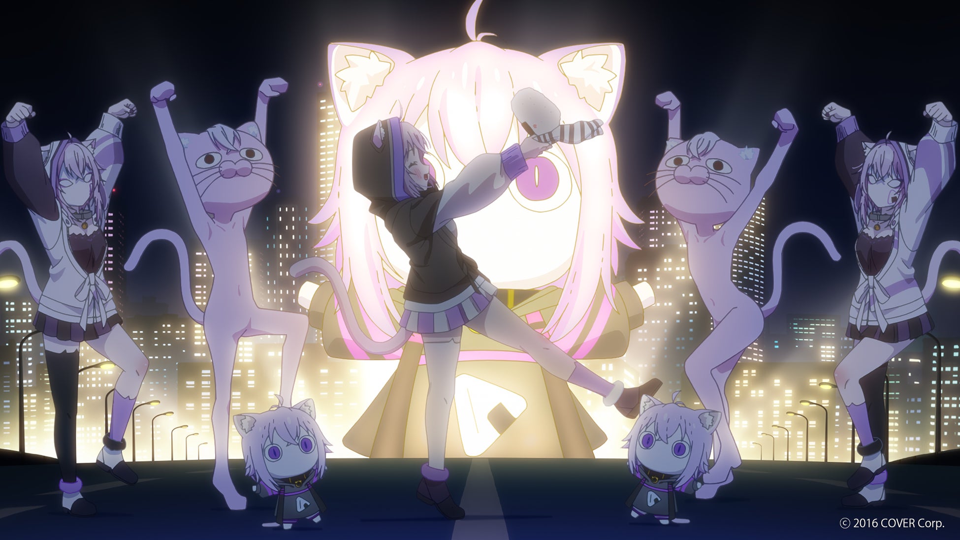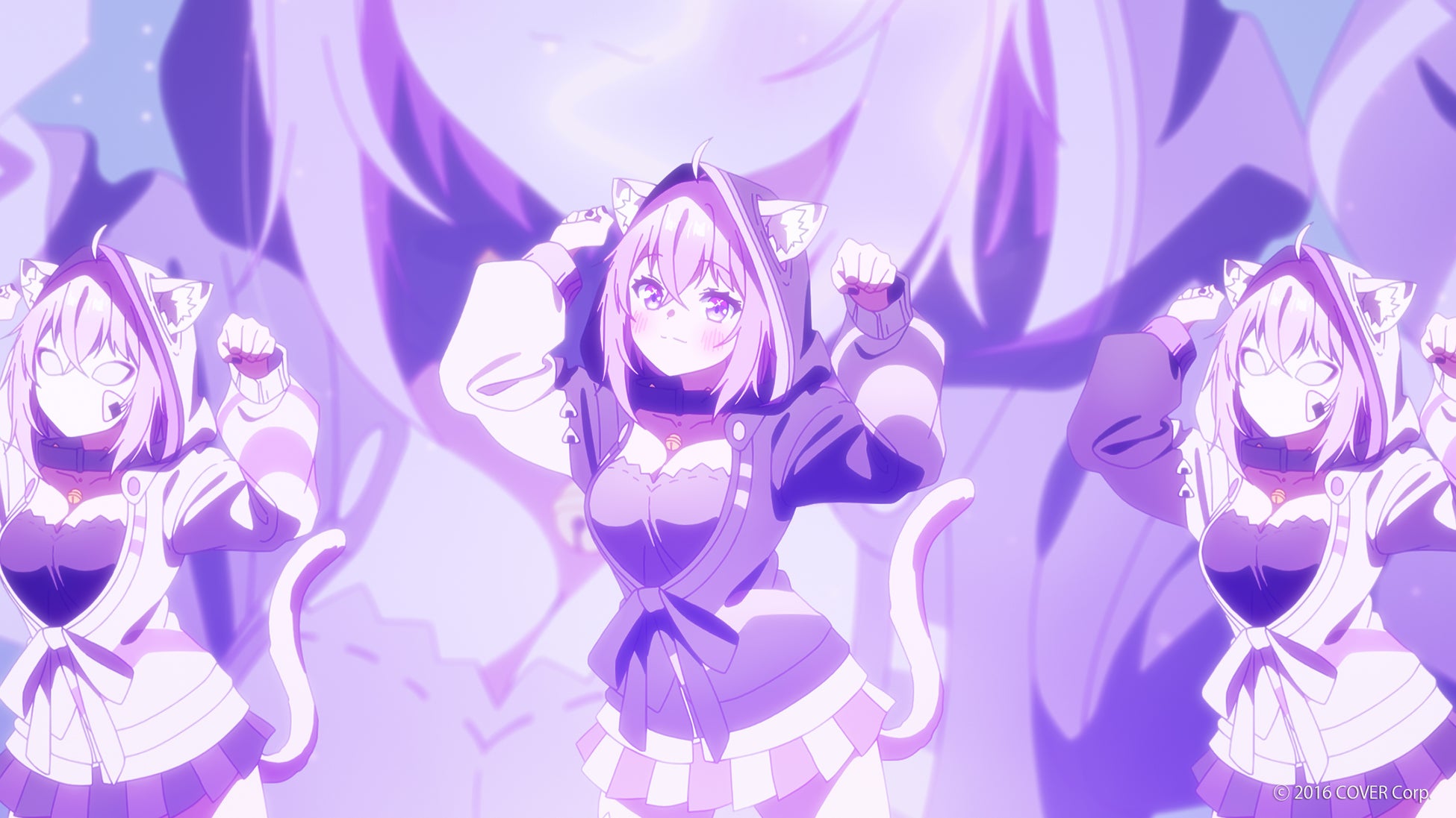 ライブステージ上でのダンスシーンは、モーションキャプチャーを駆使したハイクオリティな作画と3DCGで構成。また、「猫又おかゆ」さんの魅力である、柔らかい優しい空気感から時折見せる魅惑的な一面など、さまざまな表情を丁寧に描き各シーンに散りばめました。