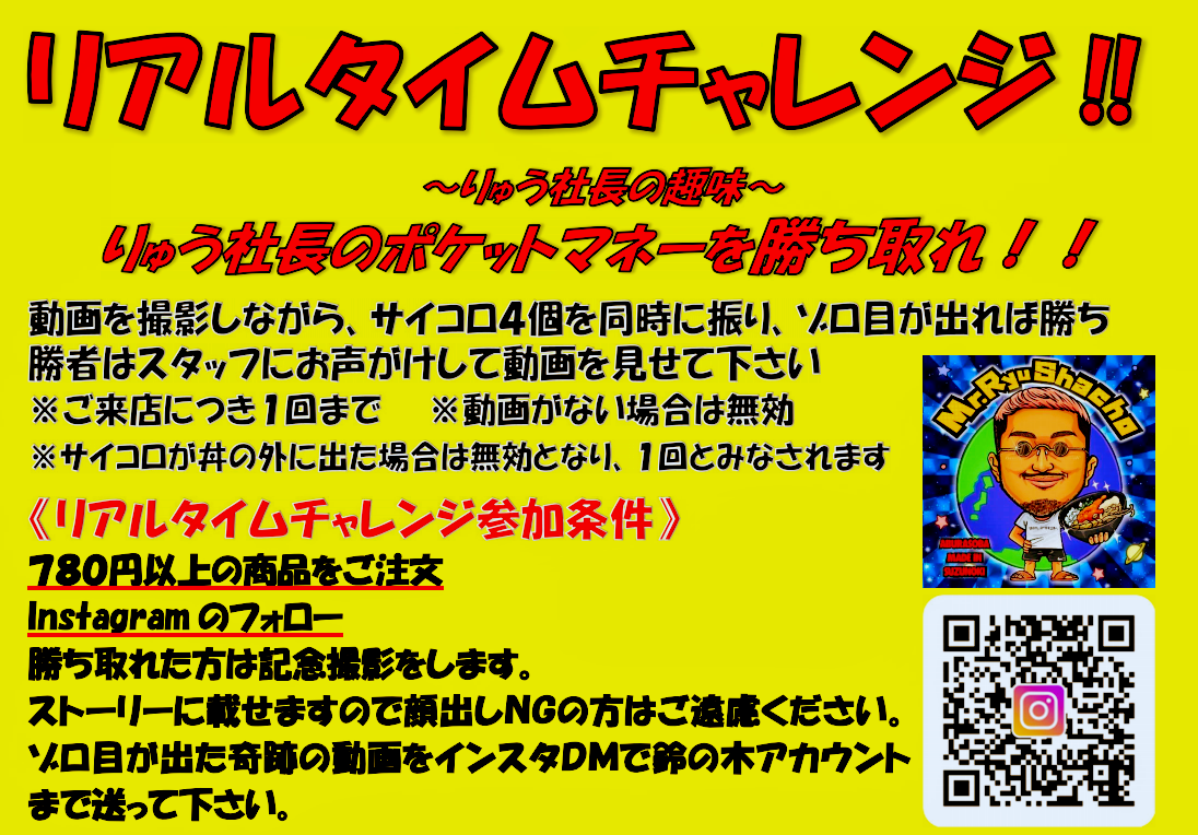 鈴の木では食事を楽しむのはもちろんですが抽選会、リアルタイムチャレンジ等ほかの飲食店にはない楽しさがあります。