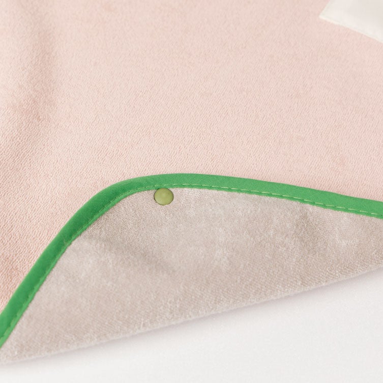 子どものケア中でも片手で簡単に取り外せ、汚れやすい肩周りまでカバーする横幅など、日常の負担を減らす工夫。