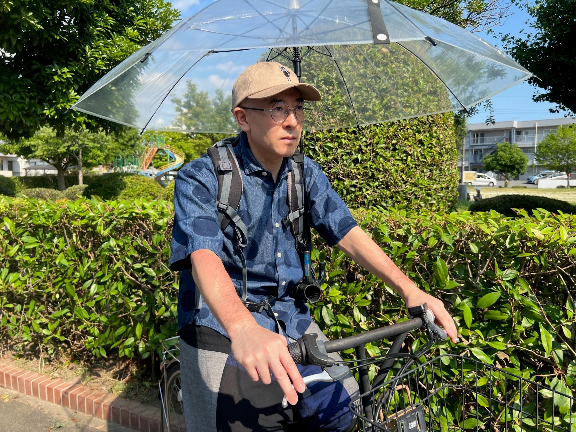 ⑥自転車搭乗時にも、しっかりとハンドルを持って傘をさして搭乗できます。