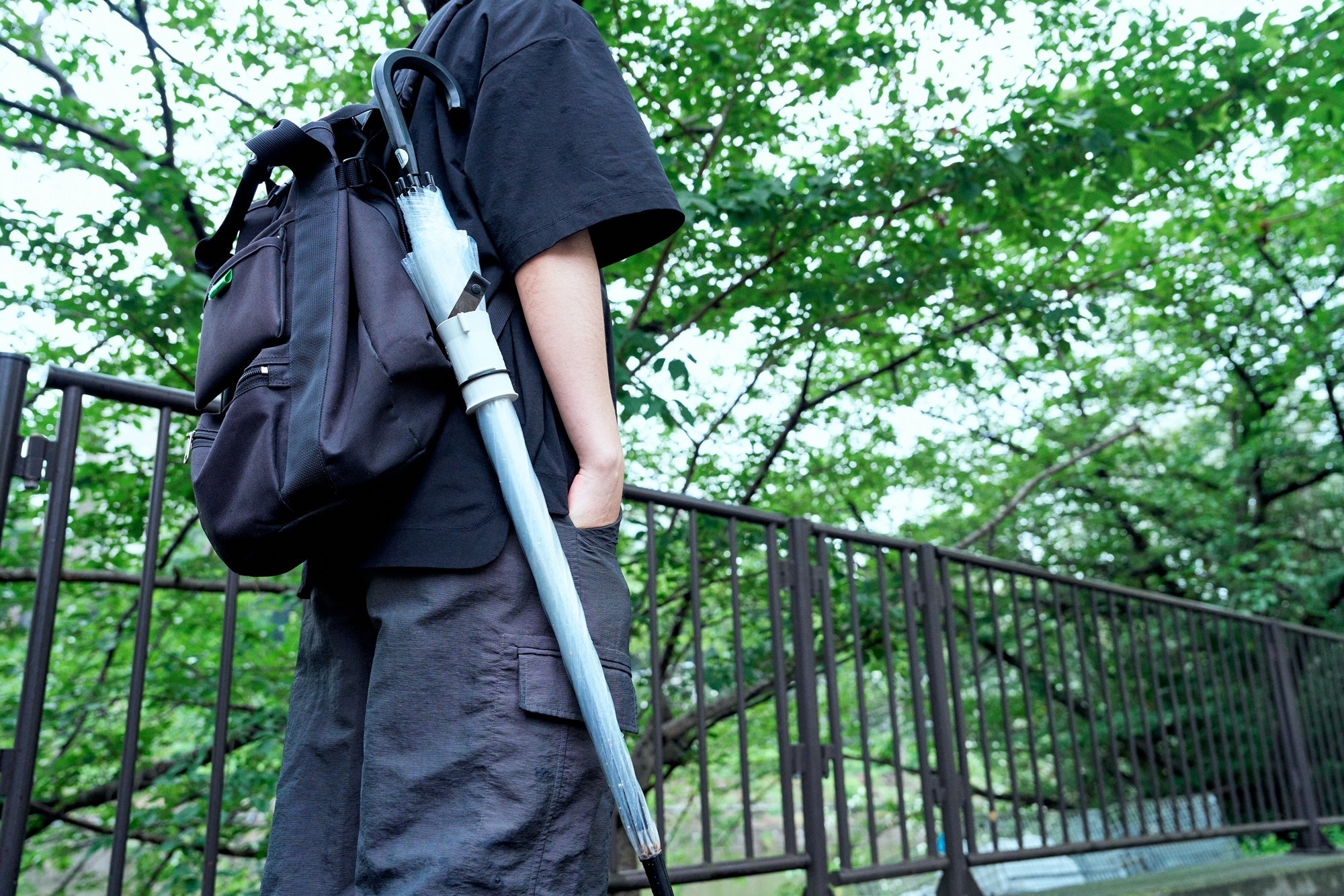⑤両手を自由に!傘を手ぶらでさして移動できます。
