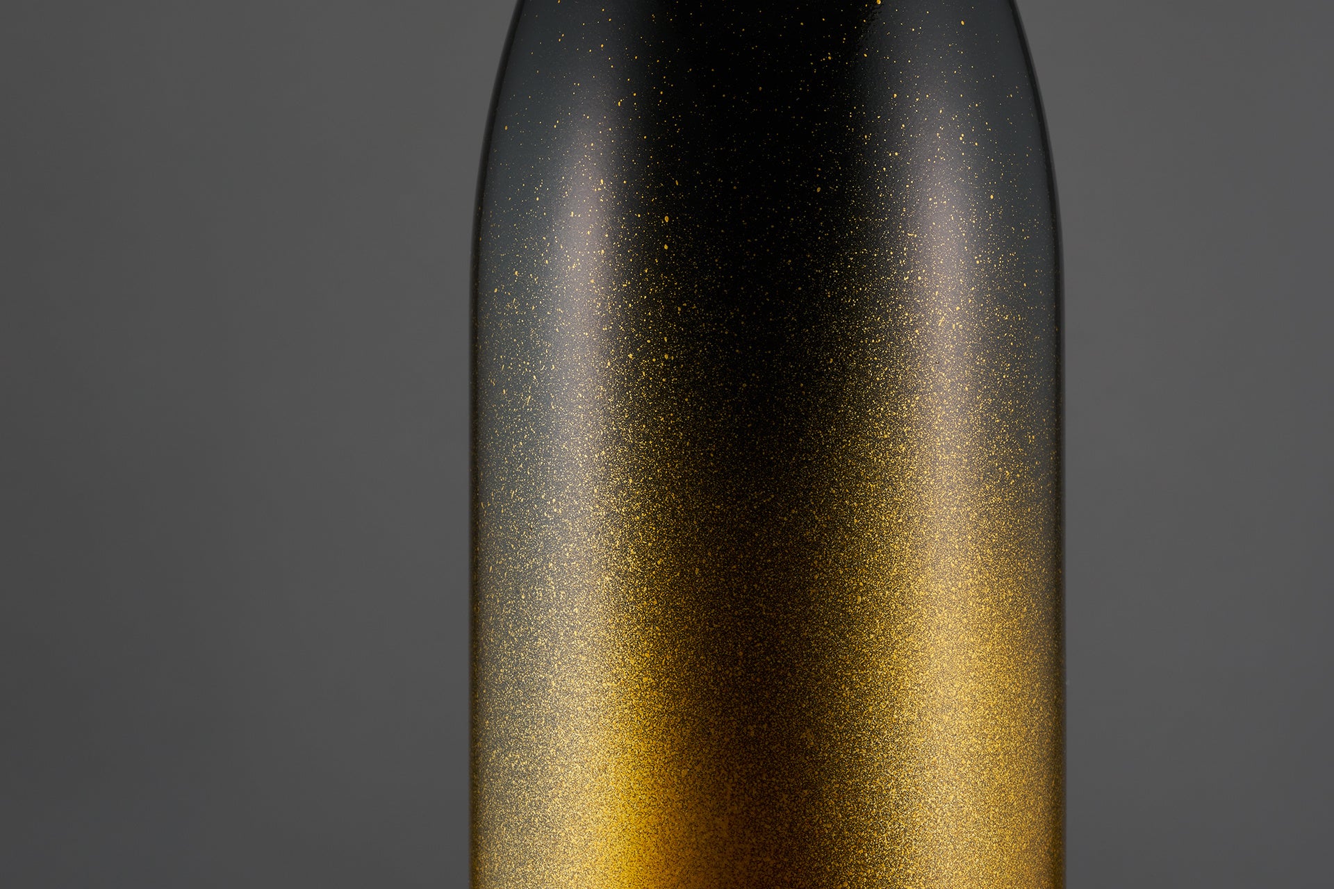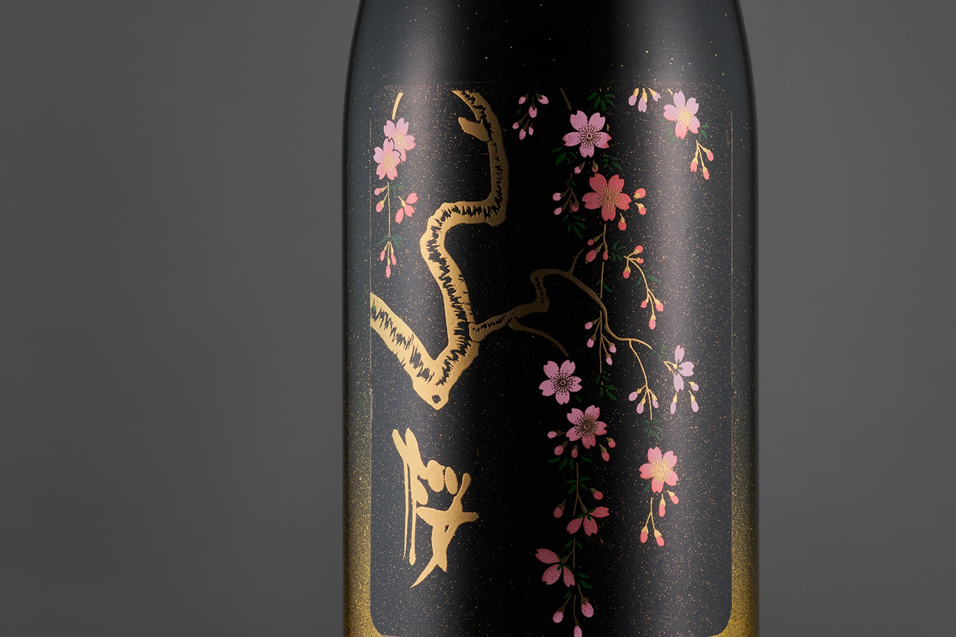 瓶直接の彩色に加え、橋本漆芸のお家芸である蒔絵で制作した半立体のラベル『重 -KASANE-』を組み合わせることで、より細やかで高級感のある表現をすることも可能です。