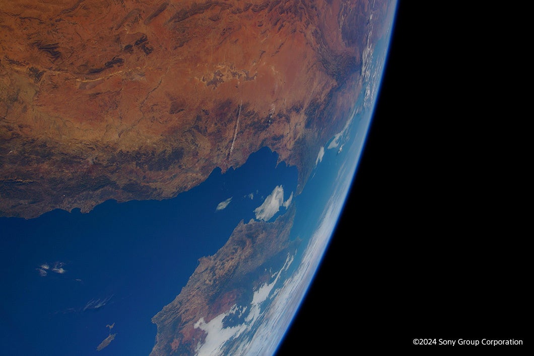 2023年1月、その第一歩として、JAXAの協力のもと、東京大学とともにソニー製カメラを搭載した超小型人工衛星『EYE』を開発し、打上げに成功。『EYE』での撮影を通した、宇宙とつながる新たな体験に取り組んでいます。みんなの「眼」になるこの小さな衛星は、今日も、宇宙から地球を見つめています。