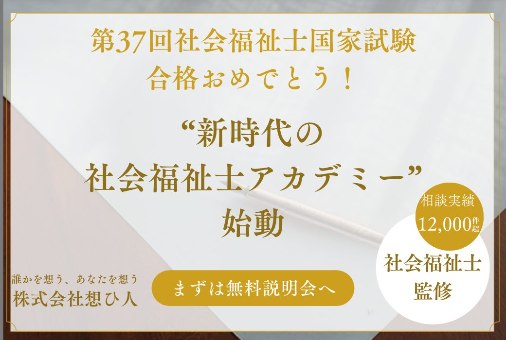株式会社想ひ人 (本社:東京都中野区/代表取締役:金子萌) は、「第37回社会福祉士国家試験」合格者や既存の社会福祉士の皆様を対象に、介護・認知症・財産管理・終活など超高齢社会の多岐にわたるニーズにワンストップで応えられる実践力を養い、今後のキャリアを広げるための学習プログラムとして「新時代の社会福祉士アカデミー」を開講いたします。