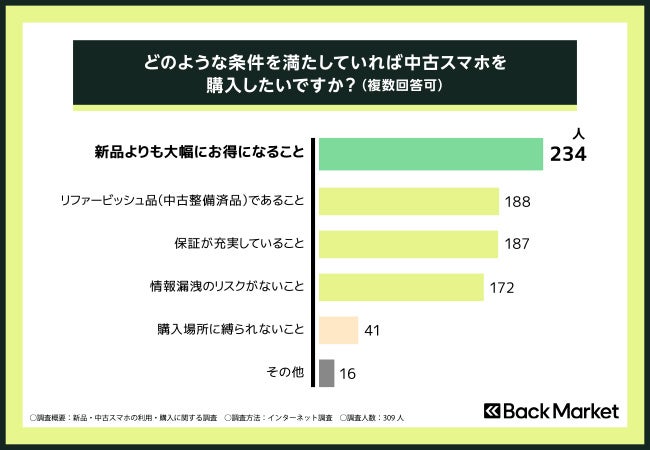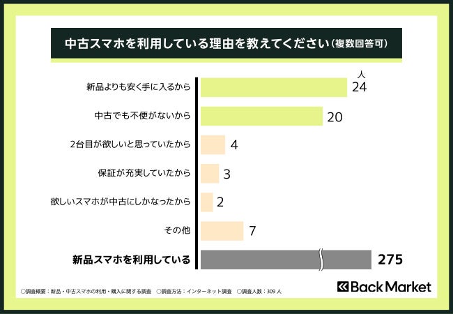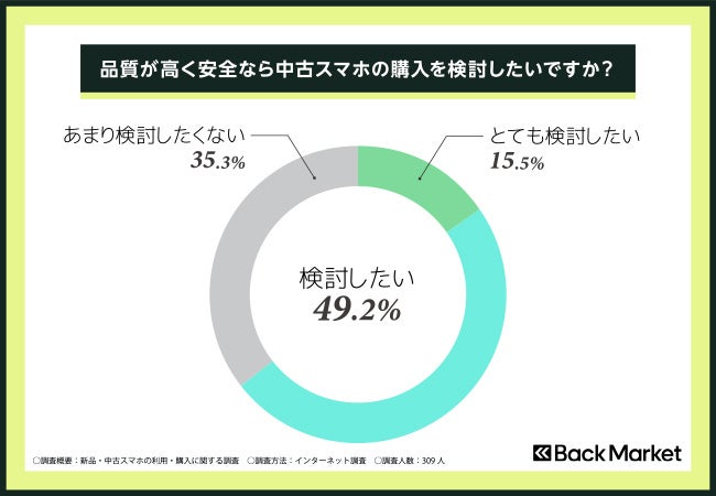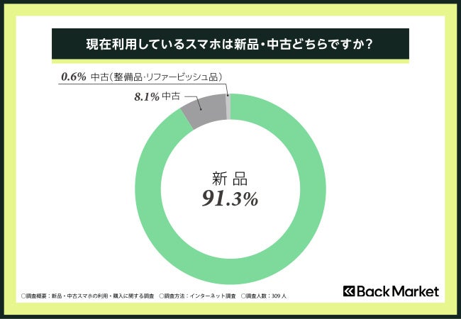 そこで今回、世界最大級のリファービッシュ(整備済製品)専門マーケットプレイスを展開するBack Market(バックマーケット)(https://www.backmarket.co.jp/ja-jp)は、全国の男女309名を対象に「新品・中古スマホの利用・購入」に関するアンケートを実施しました。