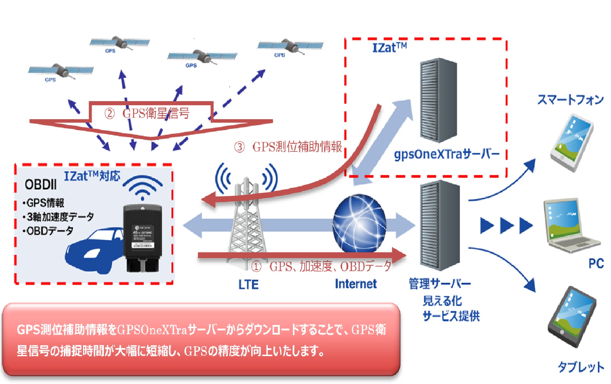 このたびネクスでは、トラック・バスをはじめ、さまざまな車両や利用シーンにおいて車両データや運転の見える化ができるように、「GX700NC」のソフトウェアにIZatTM機能を追加したバージョンの提供を開始いたしました。