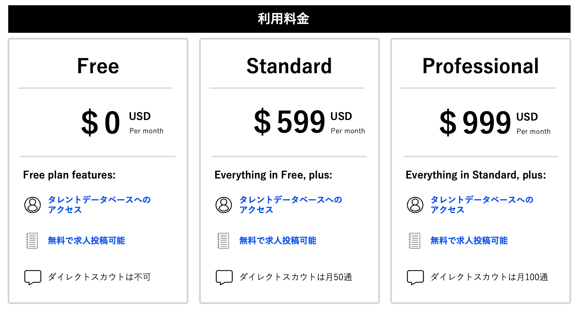 Standardプラン、Professionalプランでは気になる人材へのダイレクトメールが送付可能になります。