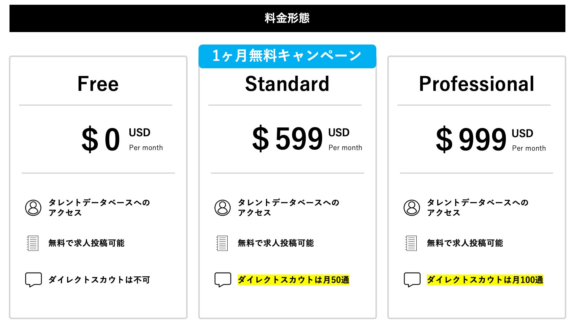 採用企業はMETAWORKS内に無料で求人を掲載することができ、人材の検索及び気になる人材に対してダイレクトリクルーティングが可能です。