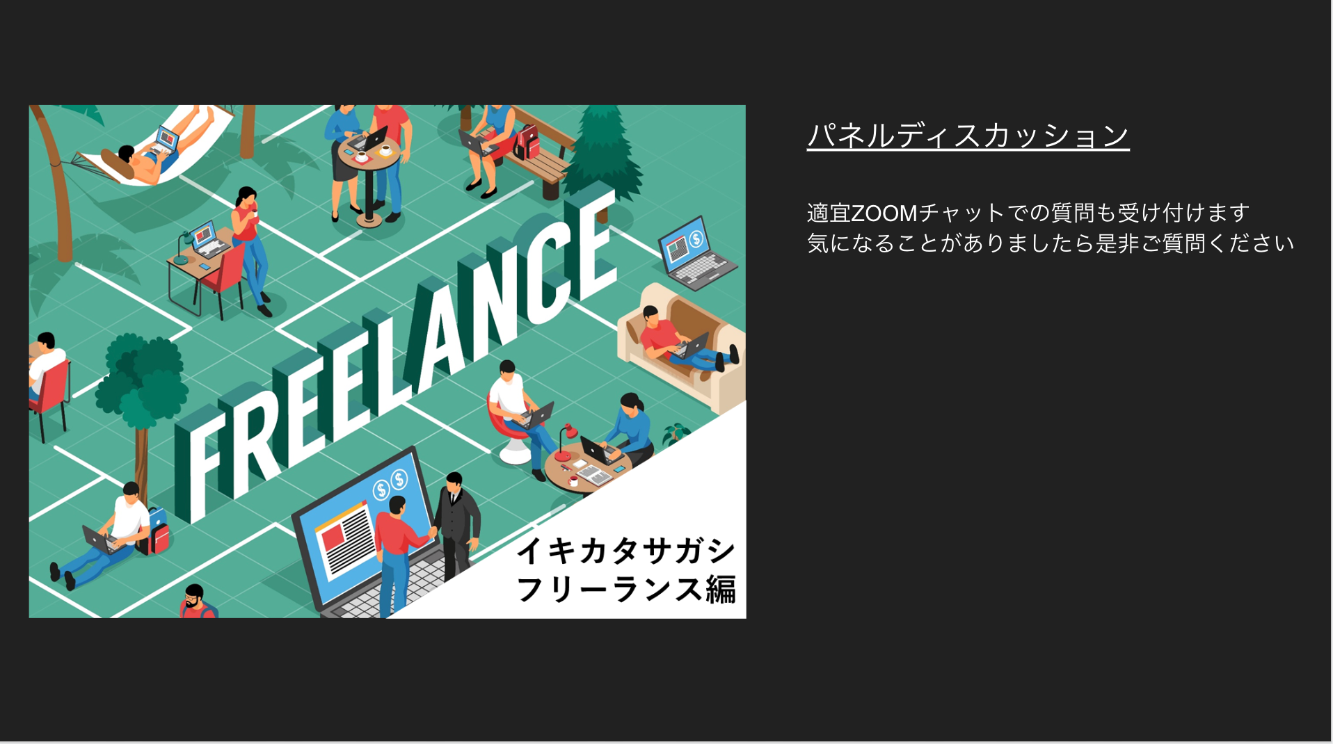 イベント前半は、現役のフリーランスによるパネルディスカッションを行いました。