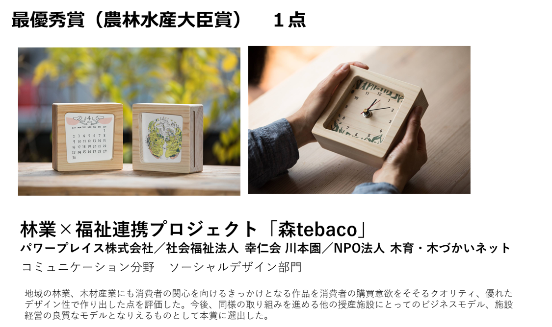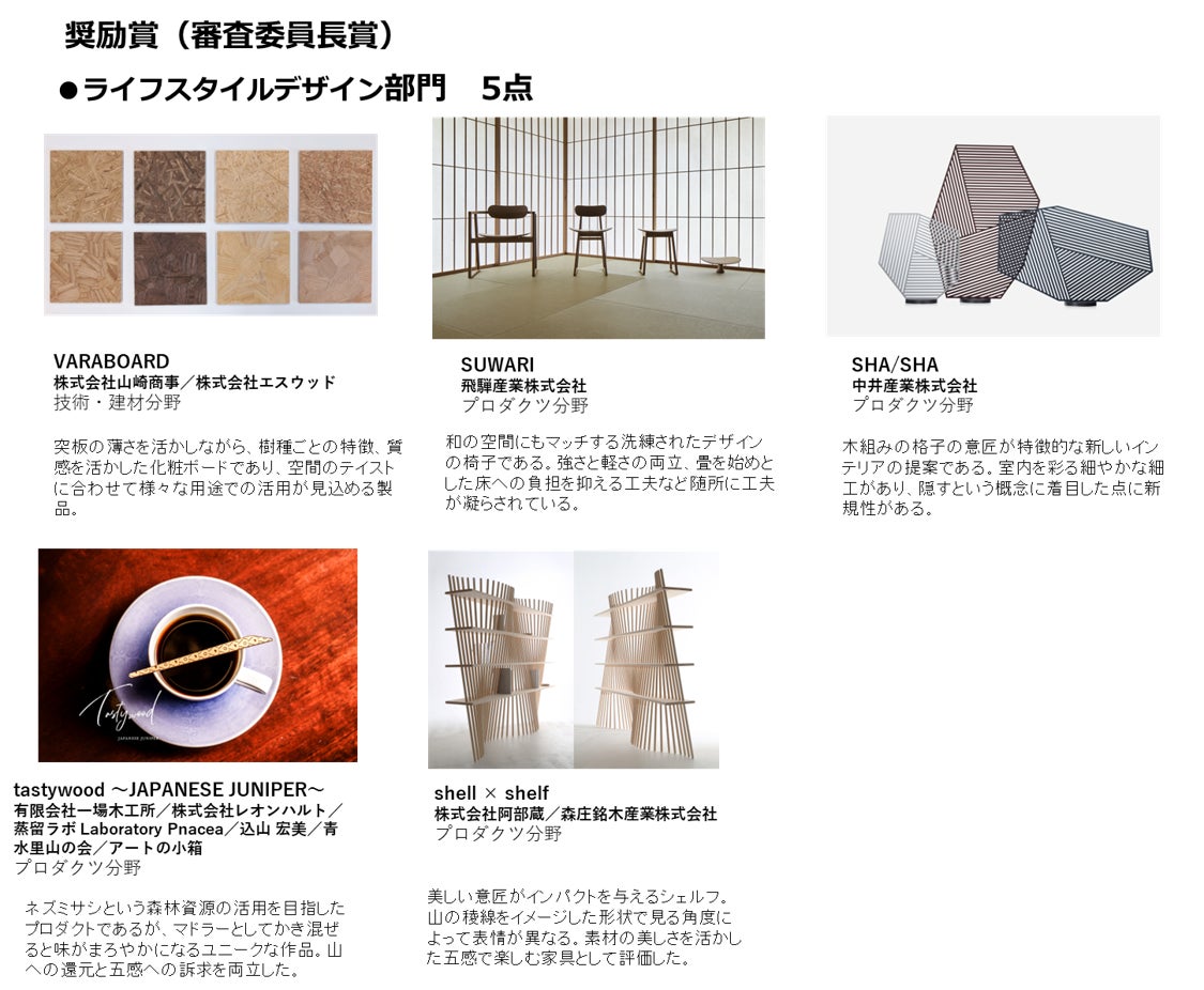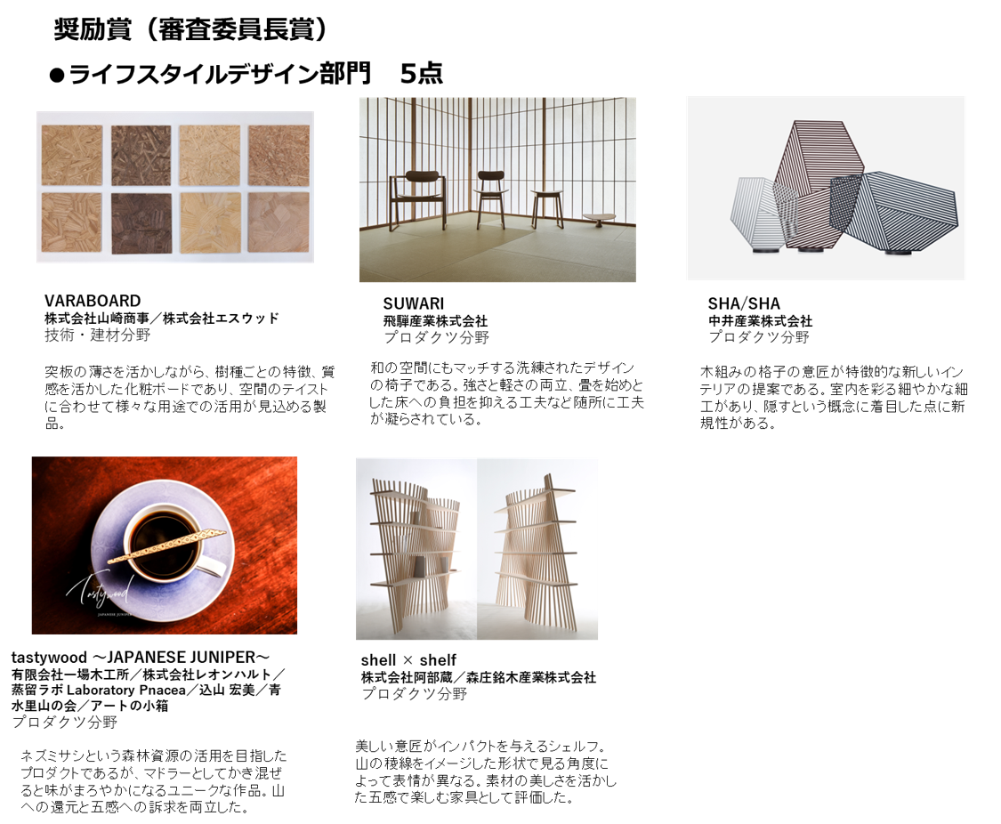 ウッドデザイン賞(入賞)/二次審査を通過したものすべて