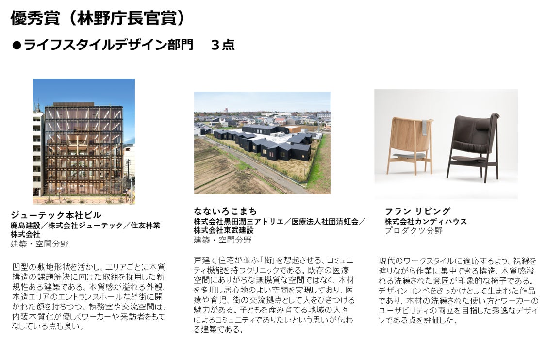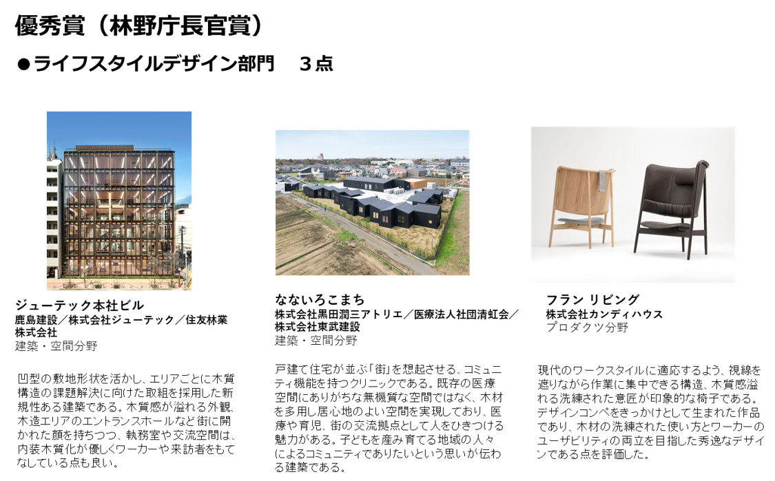 ライフスタイルデザイン部門~木を活かして質の高いライフ&ワークスタイルを提案しているものが対象