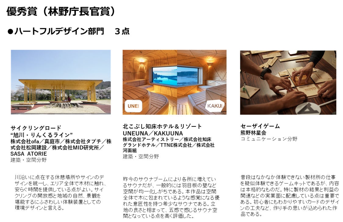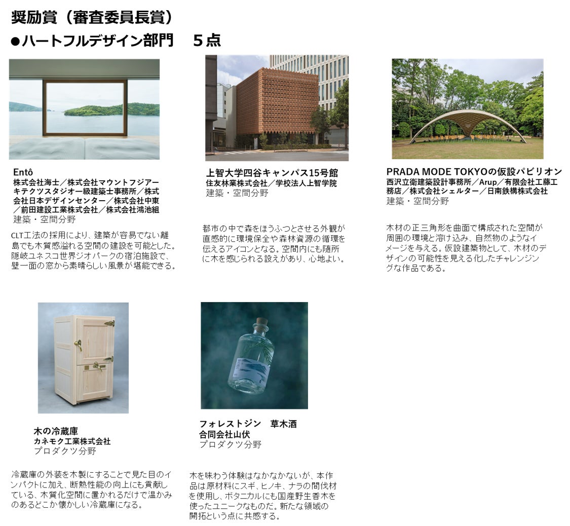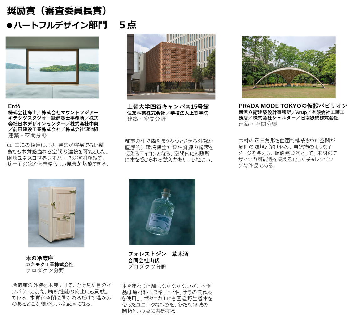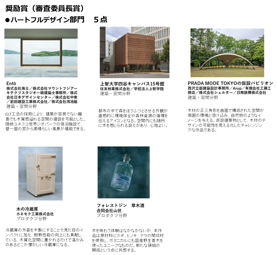 ハートフルデザイン部門~木を活かして心身を健やかにしてWell-beingの実現が期待されるものが対象
