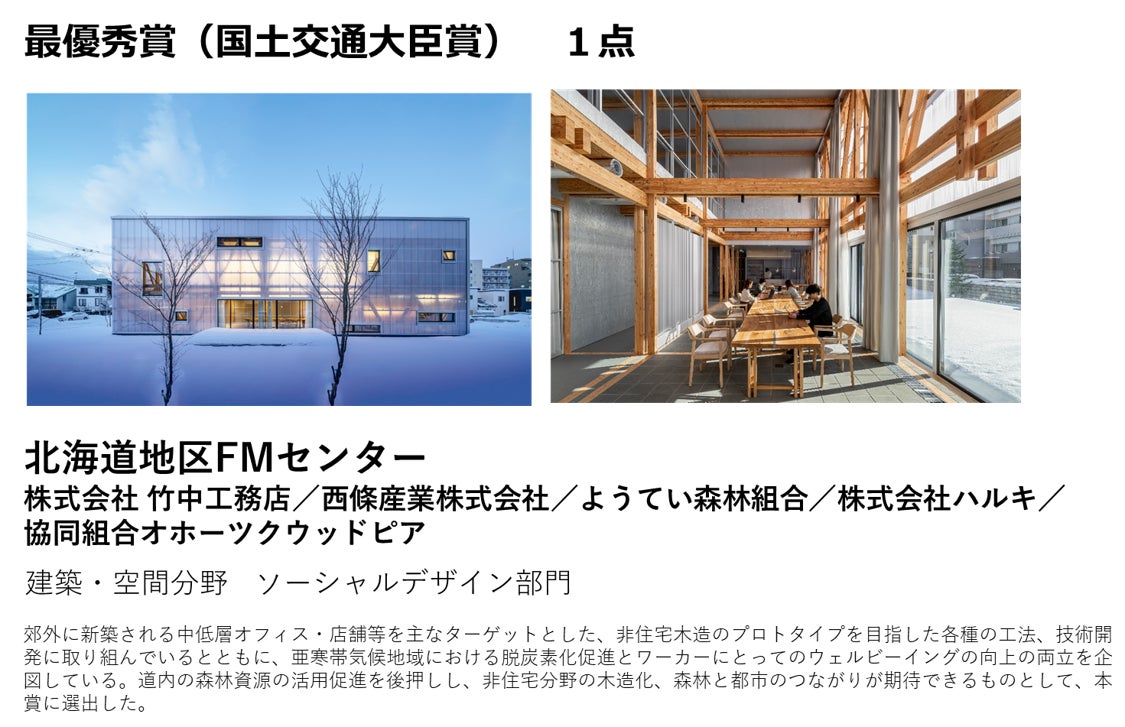 『ウッドデザイン賞2023』最優秀賞をはじめ上位賞が決定!