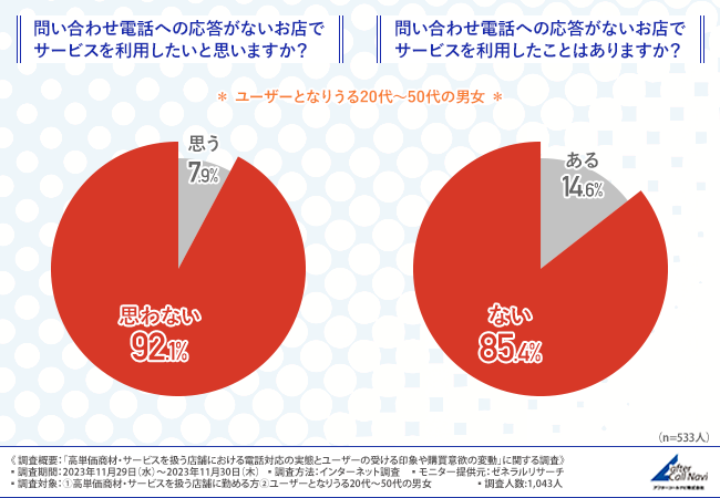 【調査概要】「高単価商材・サービスを扱う店舗における電話対応の実態とユーザーの受ける印象や購買意欲の変動」に関する調査