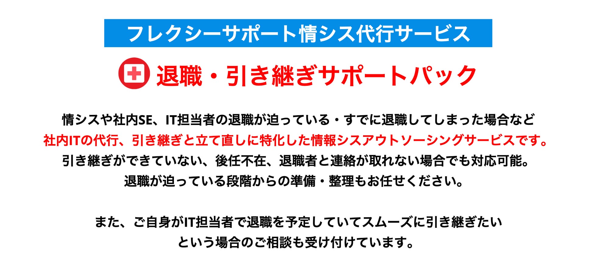 情シス・社内ITアウトソーシングのフレクシーサポート情報システム代行サービス、「情シス・IT担当の退職・引き継ぎサポートパック」を退職・異動シーズンを前に提供開始