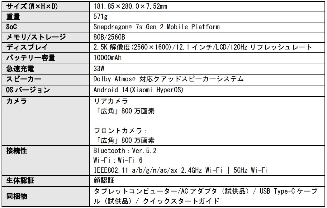 Xiaomi公式サイト(mi.com):https://www.mi.com/jp/product/poco-pad/