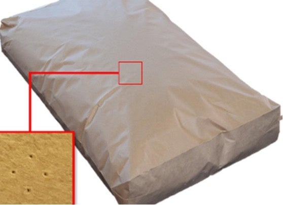 シコー独自の微細な穴あけ加工で紙袋本体からの脱気が可能となり、「粉漏れ防止」「作業効率向上」「荷崩れ防止」などが期待できます。