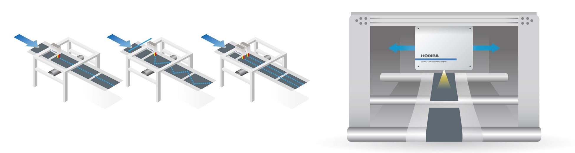 カーボンニュートラル社会の実現に向け、世界的な技術開発が加速する水素関連市場では多くの課題が生じており、そのひとつにPEM型燃料電池/水電解装置の性能向上があげられます。どちらも高いエネルギー変換効率と迅速な起動・応答性を特長としていることから広く開発・導入されていますが、双方の重要部材として用いられるCCM/MEAには高価で希少な貴金属のPtやIrの使用が不可欠であることからコスト面での負担が大きく、塗布量や厚みなどの管理が問題となっていました。こうしたニーズに応えるため、HORIBAが持つコア技術のひとつである蛍光X線技術を活かした元素分析装置を進化させ、Pt、Irを高速かつ連続的にインライン測定できる本製品を開発しました。