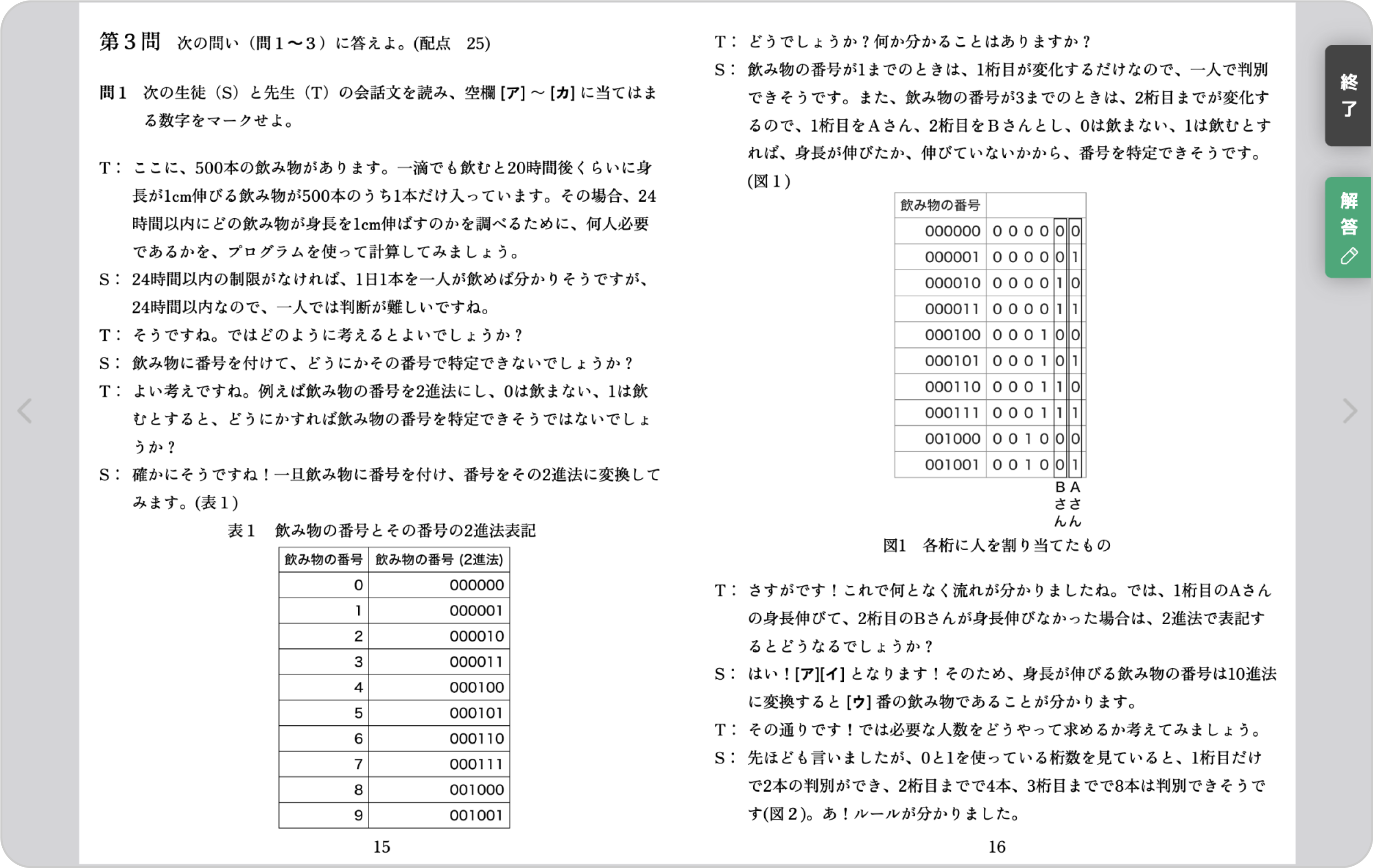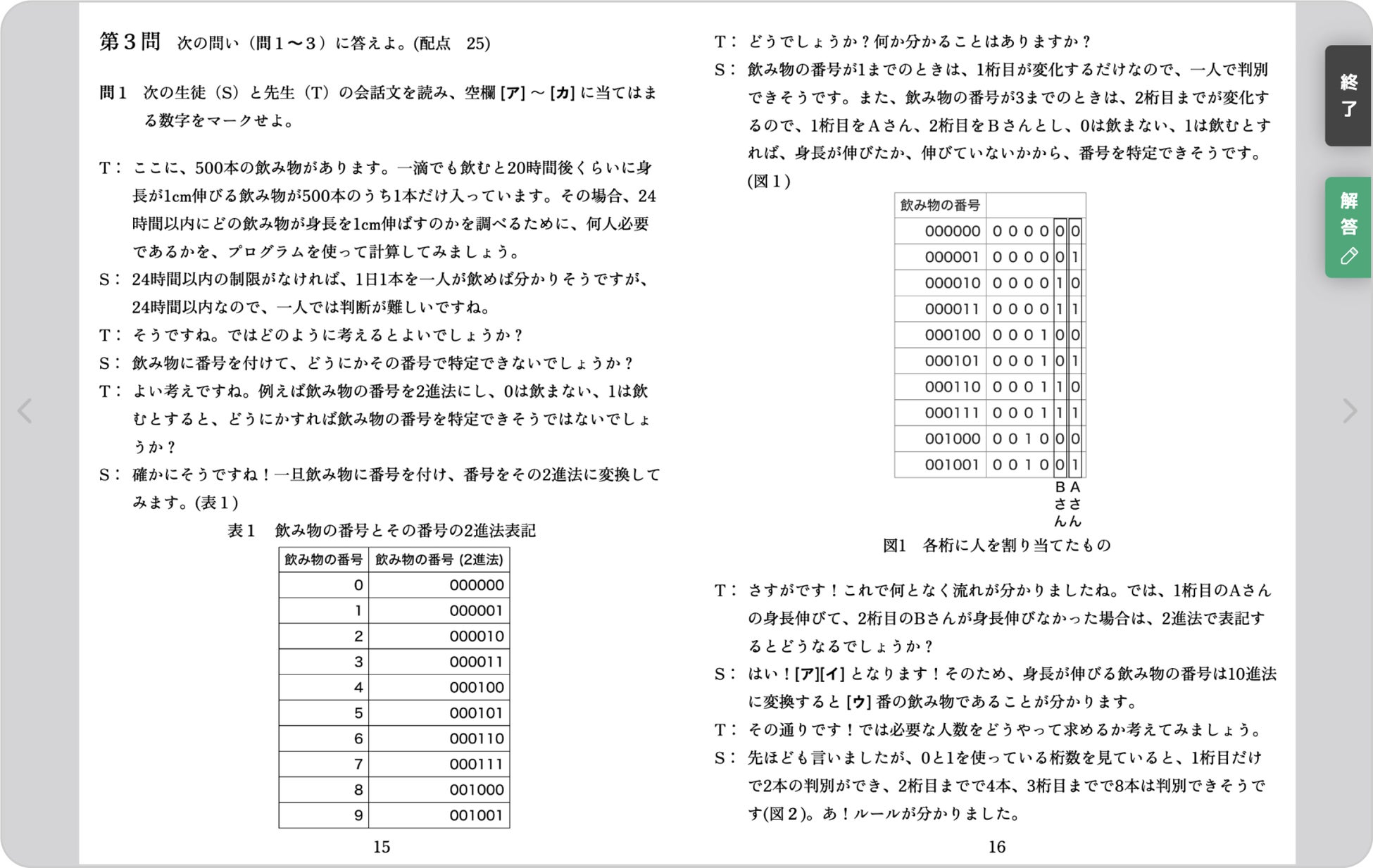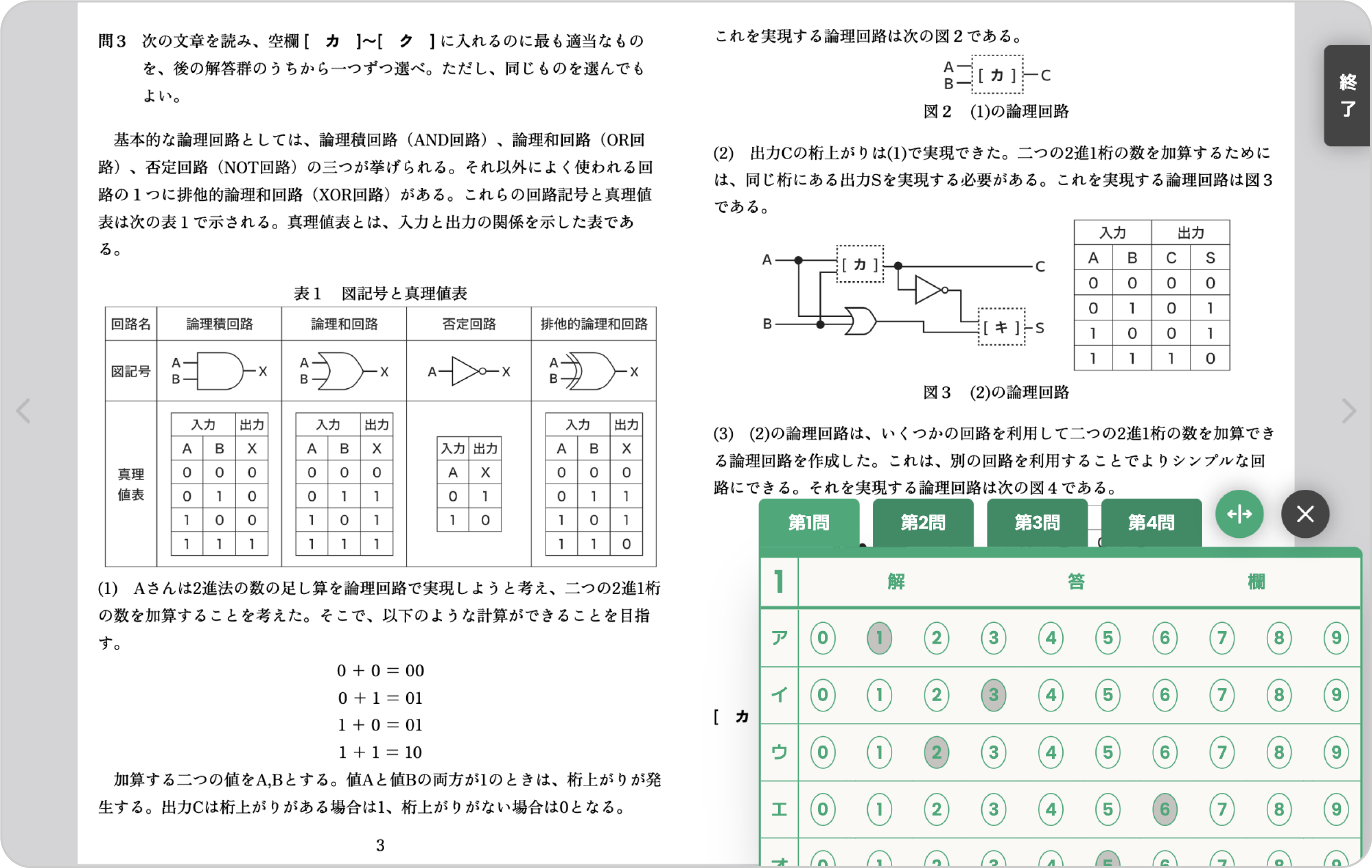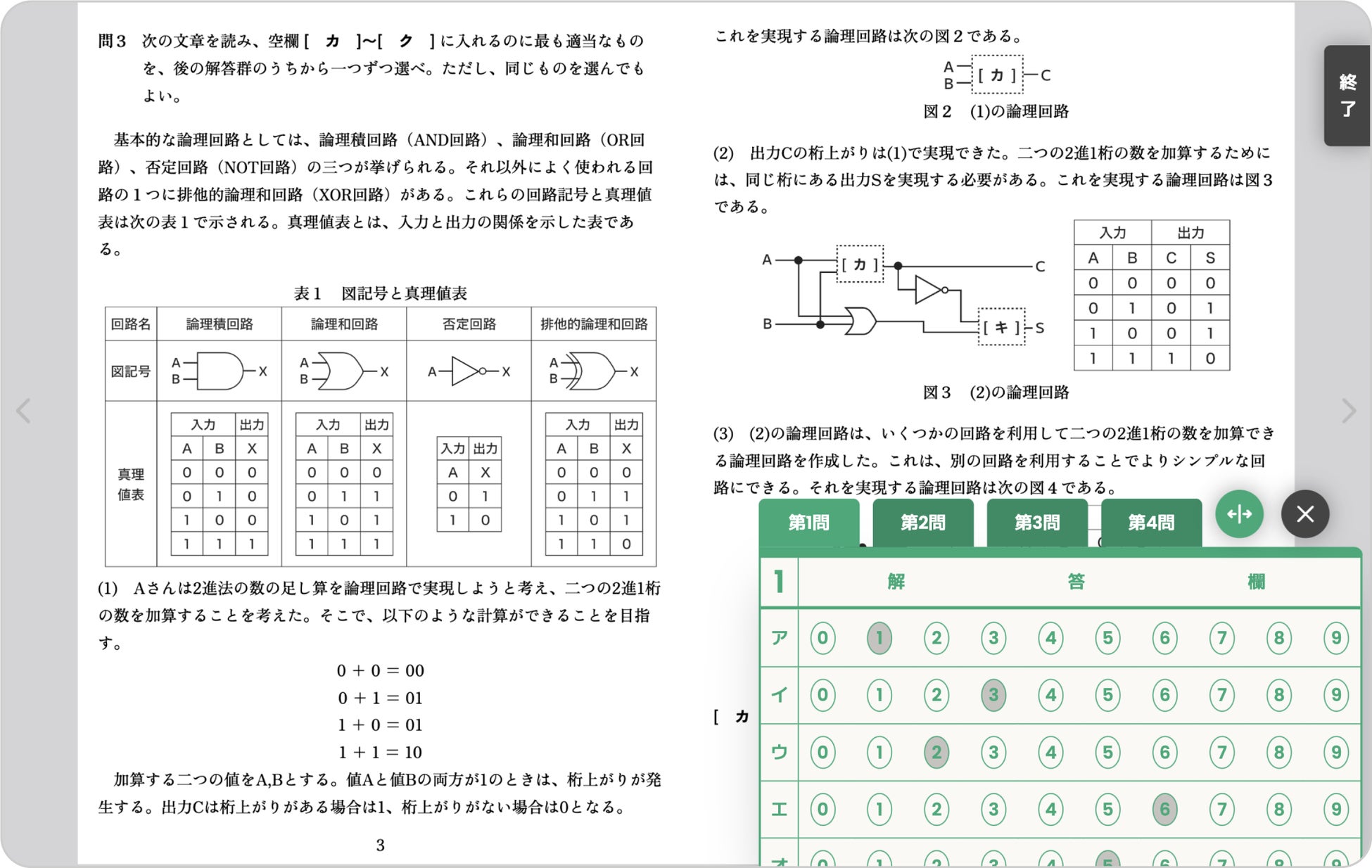 共通テスト当日に限りなくユーザー体験を近づけるために、マークシート形式での回答画面となっています。