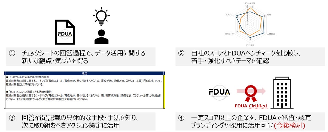 一般社団法人 金融データ活用推進協会(東京都千代田区、代表理事:岡田 拓郎、以下「当協会」)は、2023 年 6 月 28 日(水)に開催した「FDUA カンファレンス 2023 〜第五回金融データ活用 Meetup〜」において発表した、金融データ活用のあるべき組織の標準をまとめた、「金融データ活用組織チェックシート」(以下「本チェックシート」)の第1.0 版を公開いたしました。金融データ活用組織チェックシートの DL は以下URLにアクセスください。https://www.fdua.org/blog/zmqu567jqg6
