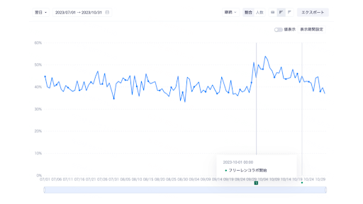図表04「翌日継続率の推移. 2023年7月から10月」