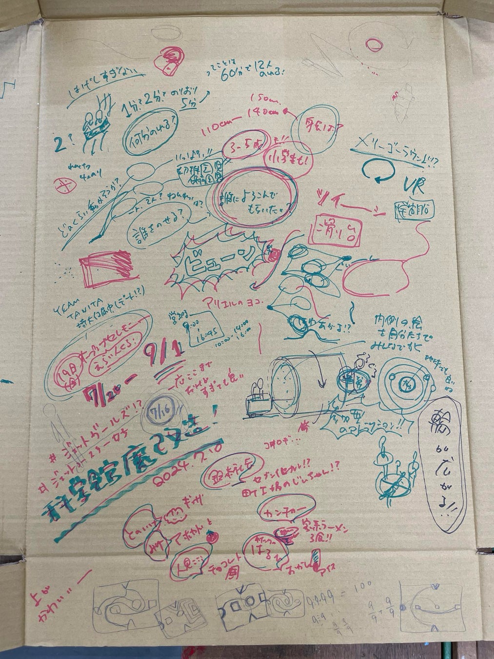 おっと、それだけでは「完成」して終わってしまうところ、とても大事なのは、それらを体験しに来る来館者の皆さん。実際に体験してみて、その感想や、もっとこうしたらいいかも!というアイディアを、たくさん会場に残していってください。そうすると、もしかしたら次に教育科学館に来るときには、その意見が反映され、また新しい展示体験になっているかもしれません!この企画展は、たくさんのお客様にご来館いただき、たくさんのアイディアをさらに吸収することで、より楽しい「遊園地」へと、どんどん進化していくのです。