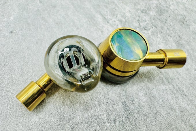 音響特性にも優れた銅でできたハウジングと1つ1つ違う柄の天然貝を組み合わせた美しい筐体