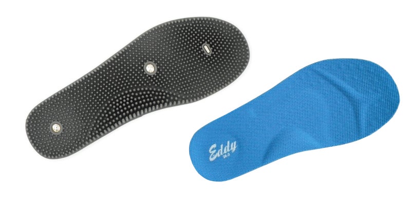 3年間改良を重ねて完成したクセになる硬さで足裏のツボを刺激し磁力で血行を促進する【マグ&アキュプレスインソール】(医療機器クラス2認証 認証番号304AGBZX00060000)と足裏形状にフィットして優しく足を休ませる【フットベッド・エディフォームインソール】の2種類が標準セットされており、使い分けることで足裏を刺激し、血行血流を促します。