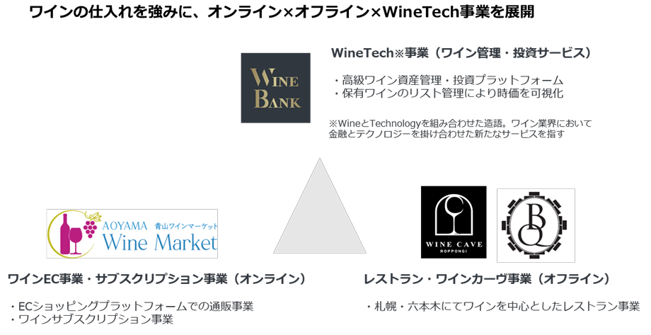 事業内容:WineTech事業、ワインを中心とした酒類販売、 レストラン事業