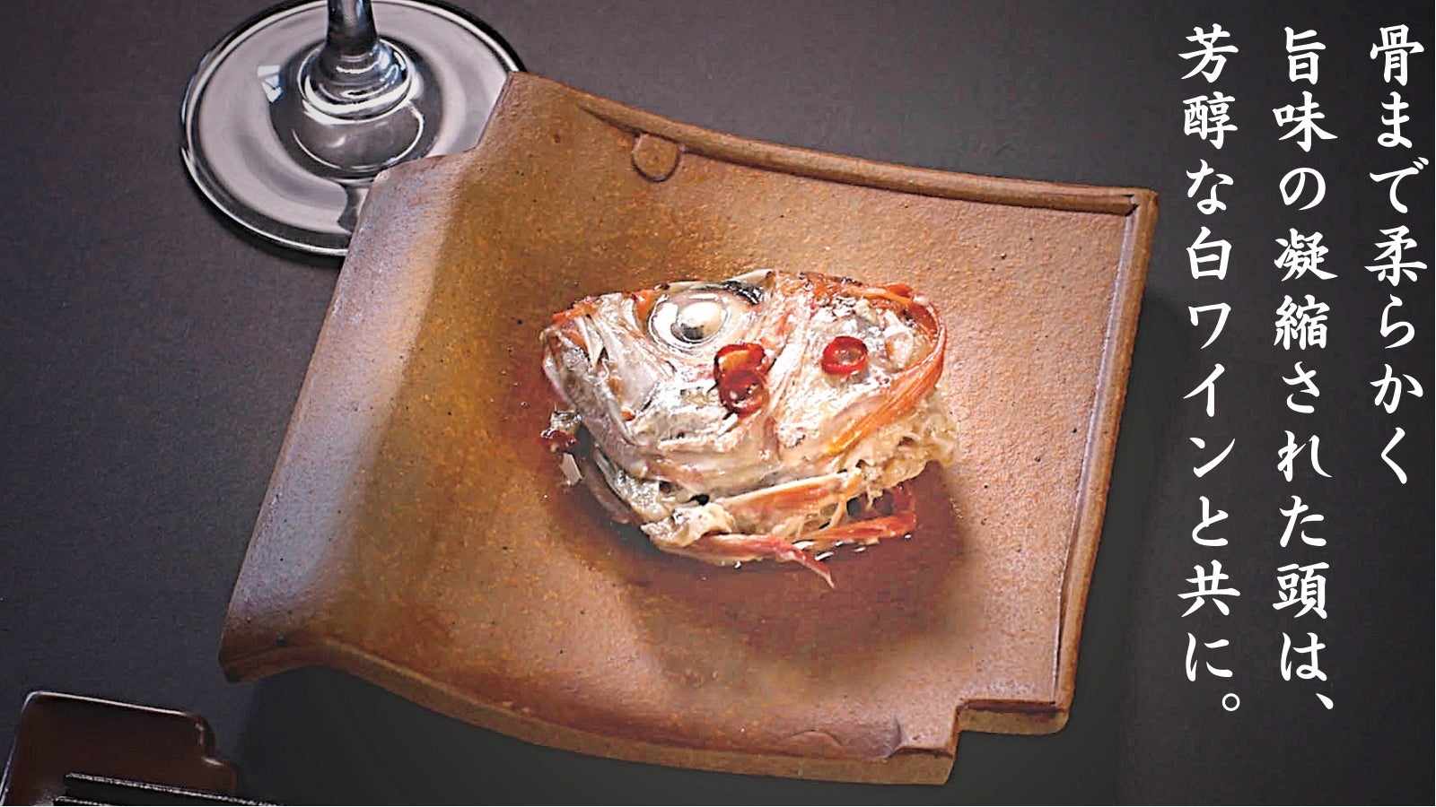 脂のりのよいカマ、栄養豊富でコラーゲンも多い目、旨味の詰まった頭を、特製オイルと唐辛子でピリ辛に煮詰めています。頭の骨までやわらかく、食べやすくなっています。さまざまな食感と旨味が味わえます。