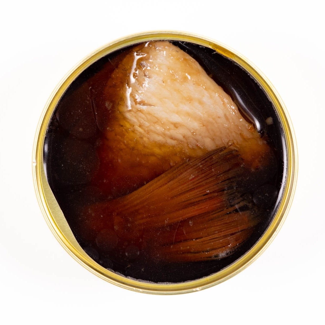 のどぐろの部位のなかでも、もっとも身が引き締まっている、淡泊な白身を楽しむ部位です。白身肉の美味しさを引き出す特製のタレで煮付にしています。タレと白身が生み出す味の調和が特徴の一缶です。